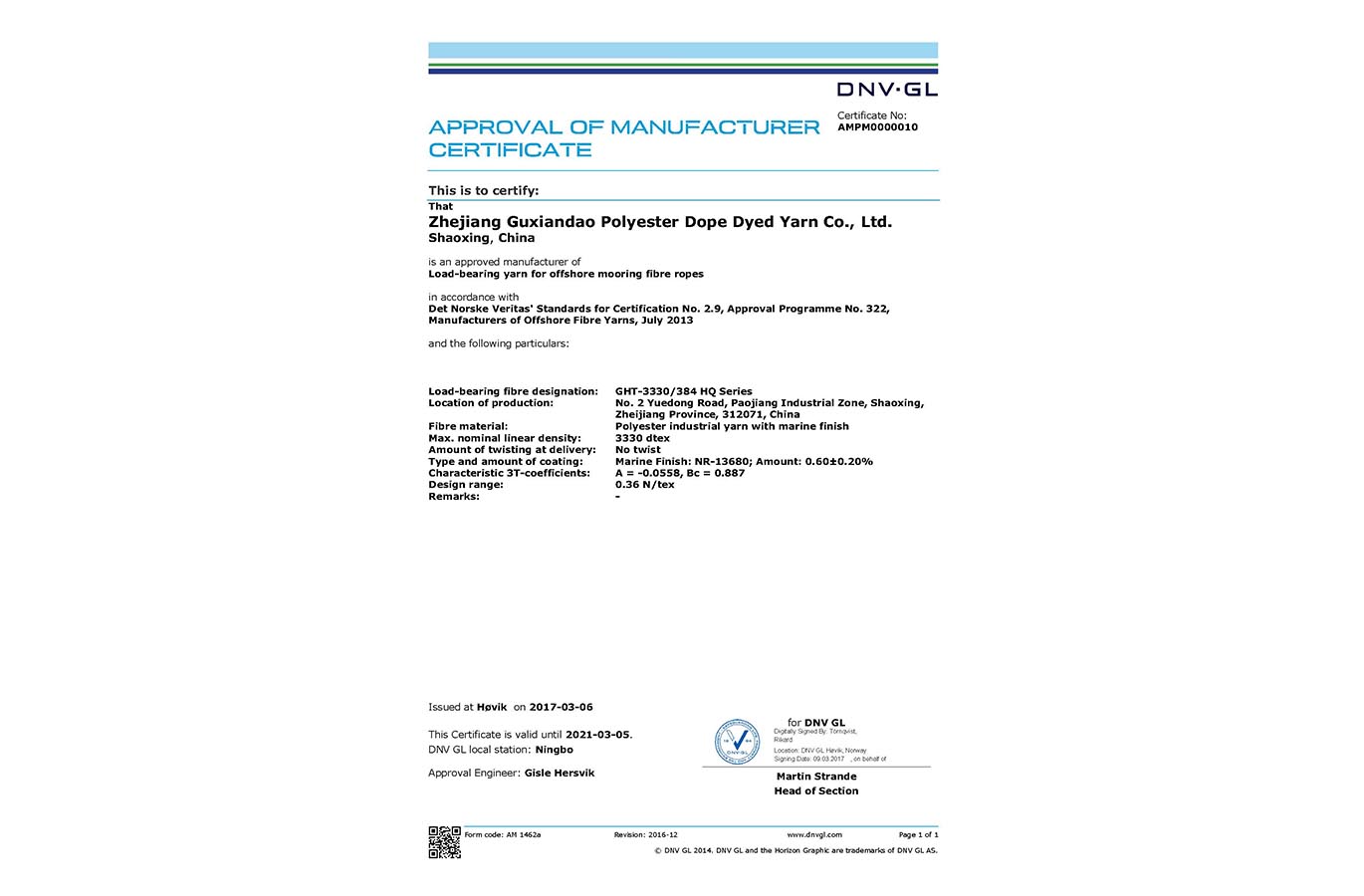 海洋纜繩制造認(rèn)證